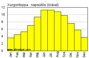 Havi átlagos napi napsütéses órák száma.